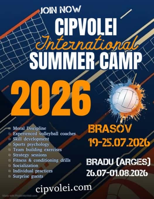 CIPVOLEI International Summer Camp #9 – Brașov & Bradu (19–25 iul | 26 iul–1 aug)Două antrenamente/zi în arenă profesională, cu antrenori internaționali.